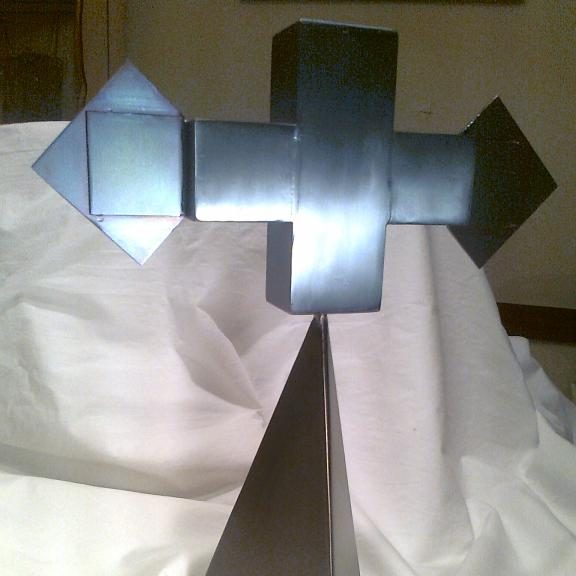 Altar cross of the hermitage of Sant Pere de Reixac. The design is by the artist Anna Martínez and it was made of welded titanium sheet in order to be able to selectively anodize it and give it the various colors it presents.