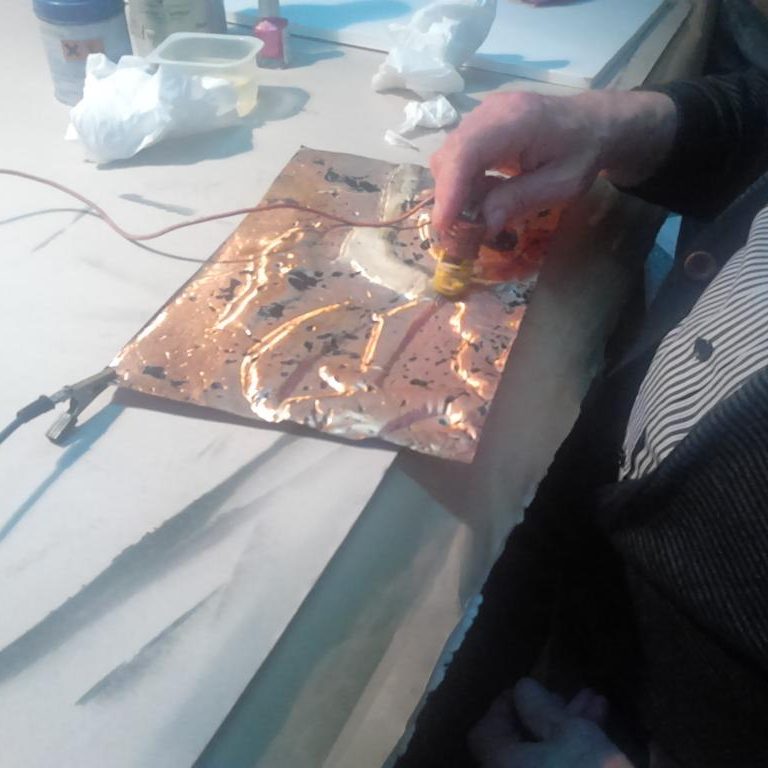 Series of embossed copper plates representing various scenes from Genesis. In collaboration with the artist Lazaro Ferrer , creator of the work, contributions of gold and silver and oxidation in copper hydroxycarbonate were made.