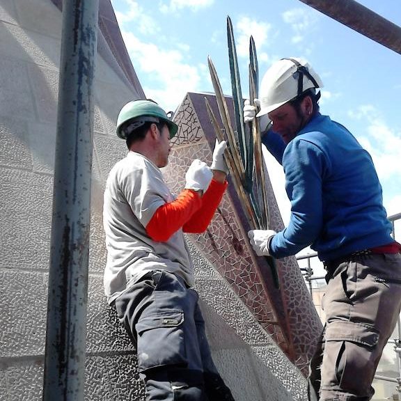 72 patinated bronze palms that surround the dome of the sacristy of the Sagrada Família on the outside. In all the palms we polished a series of leaves so that the bronze-yellow color remained in contrast to the green color of the patina given to the foundry.