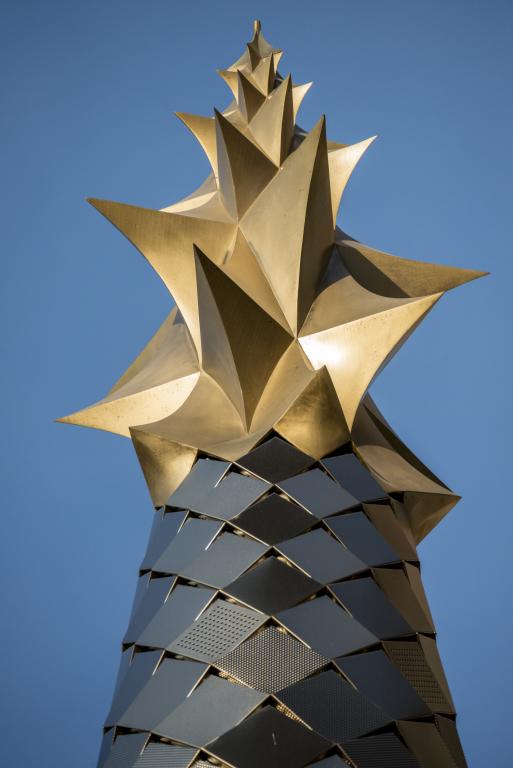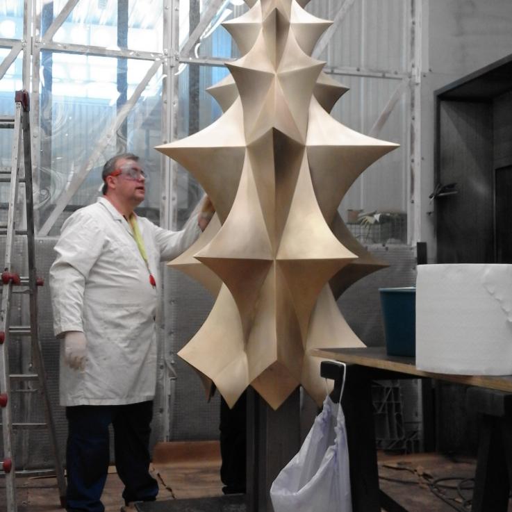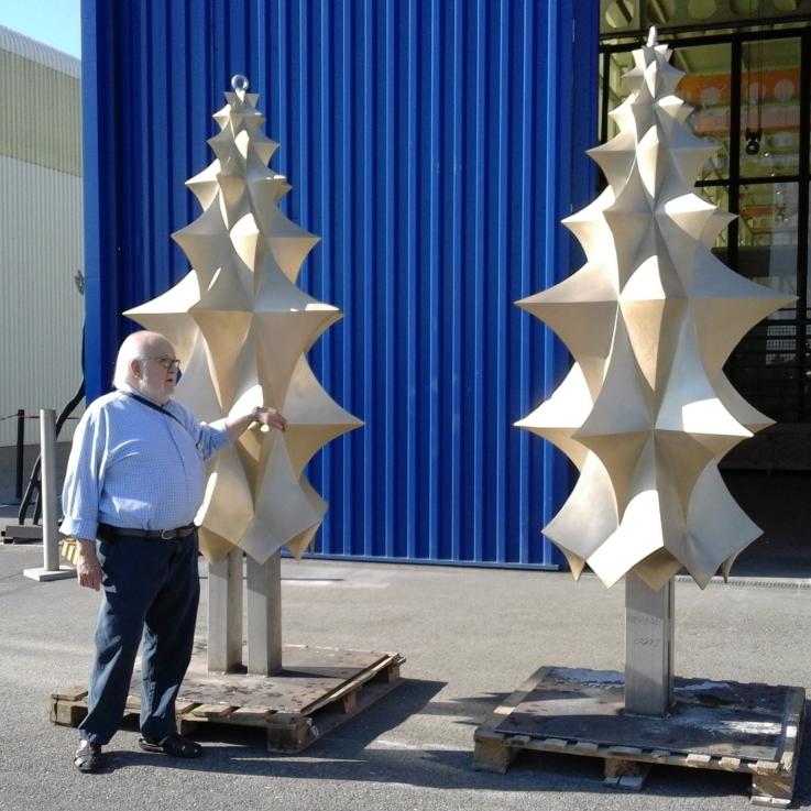 Two cupolas that top two towers in the Basilica of the Sagrada Familia. These pieces, 2.10 meters high and 1.20 meters in maximum diameter, were made of brass to simulate the yellow color of gold.