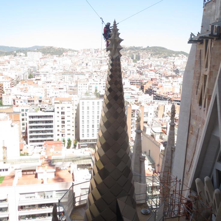 Pieces two meters high and more than one meter in diameter that crown the emblematic Basilica of the Sagrada Familia.