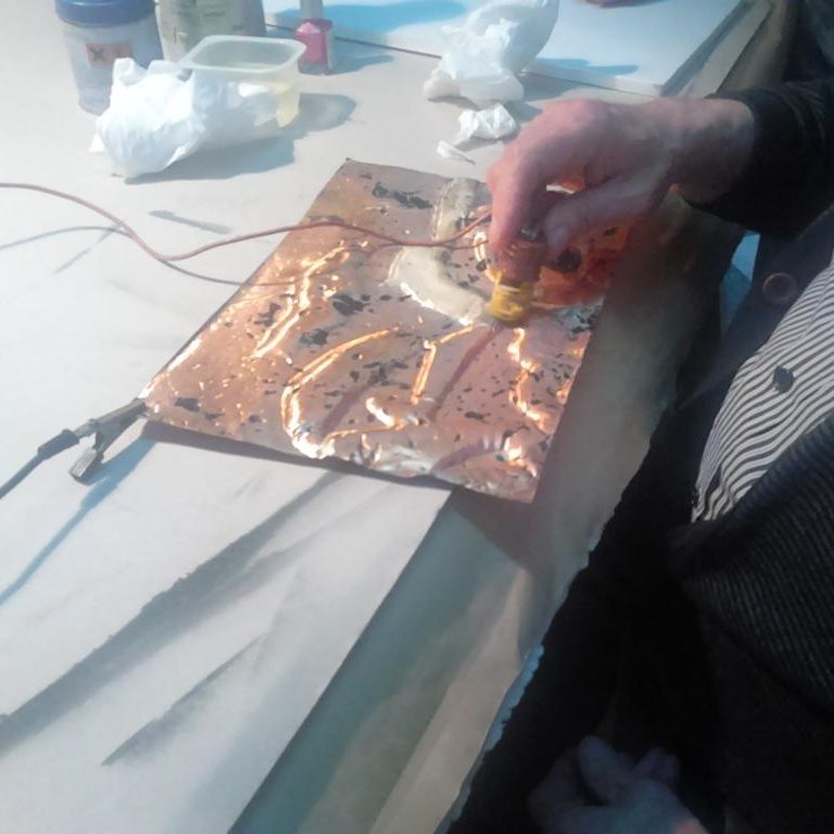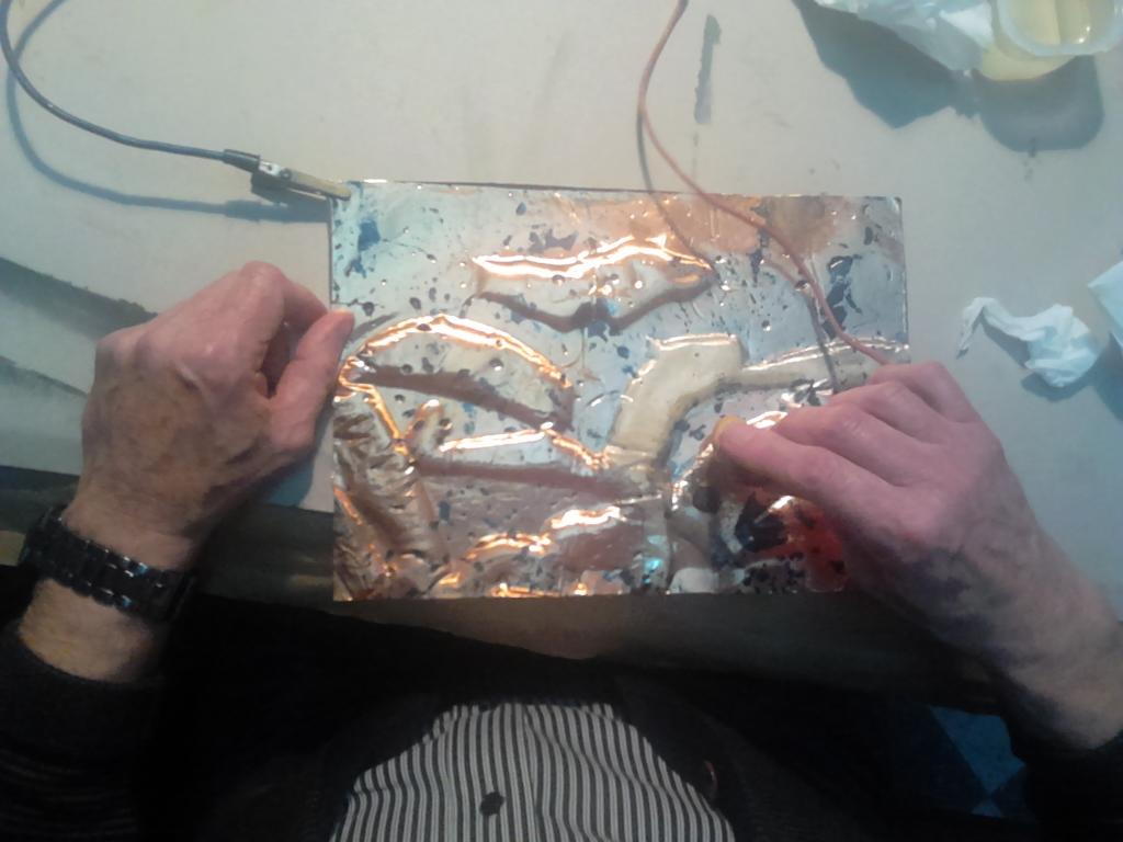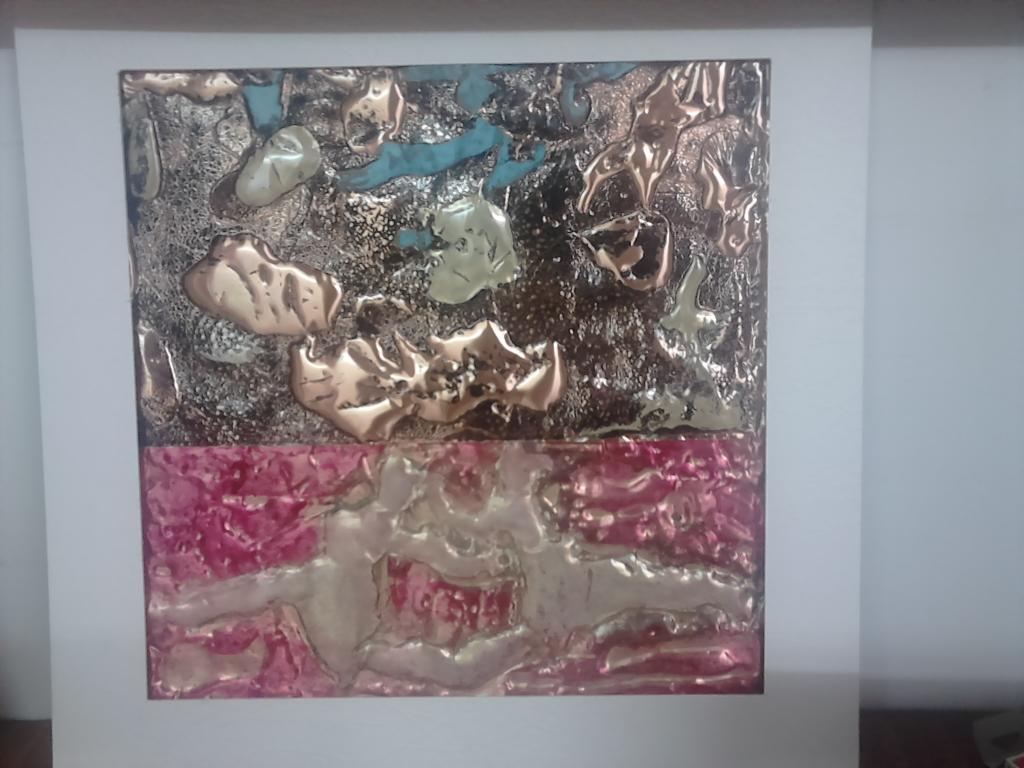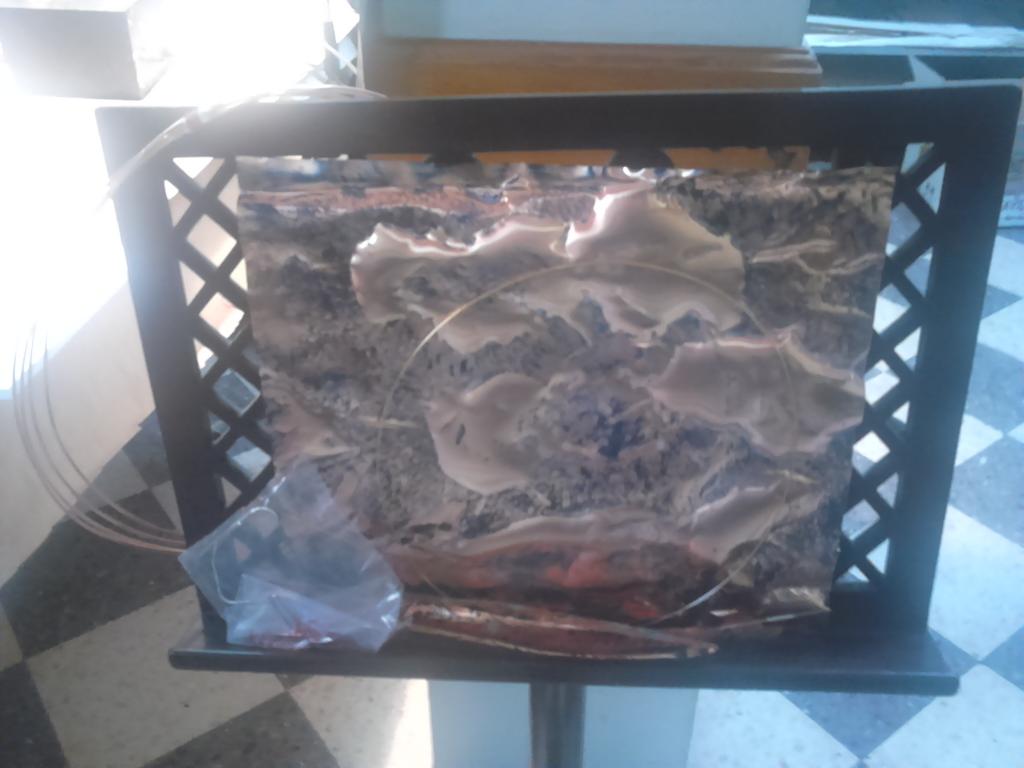 It is a series of copper plaques in relief that represent various scenes from Genesis. In conjunction with the artist Lazaro Ferrer, creator of the work, contributions of gold and silver and oxidation with copper hydroxycarbonate (emerald green) were made to highlight specific parts of the reliefs.