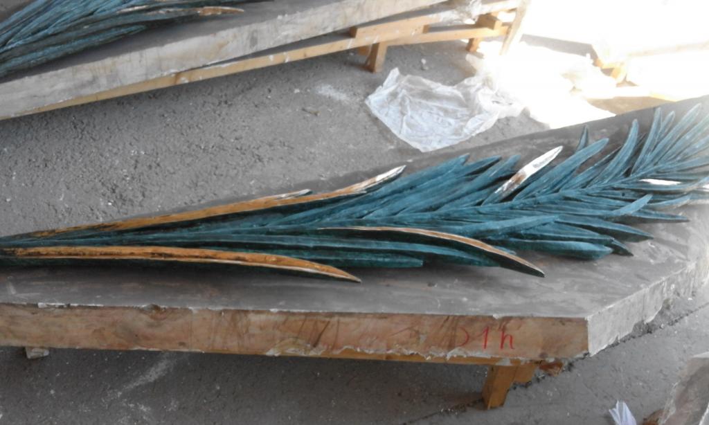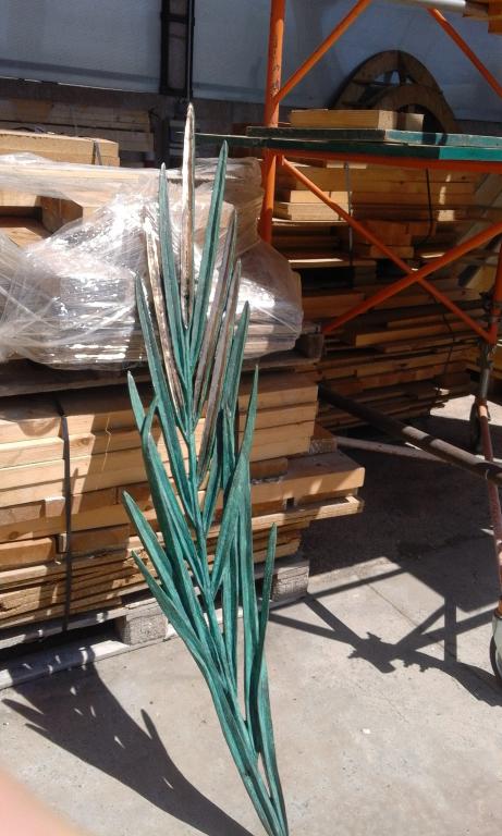 In all the palms we polished a series of leaves so that the bronze-yellow color remained in contrast to the green color of the patina given in the foundry.
