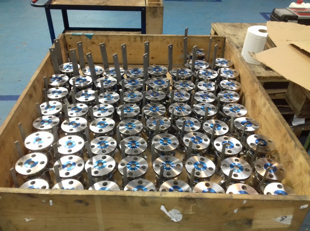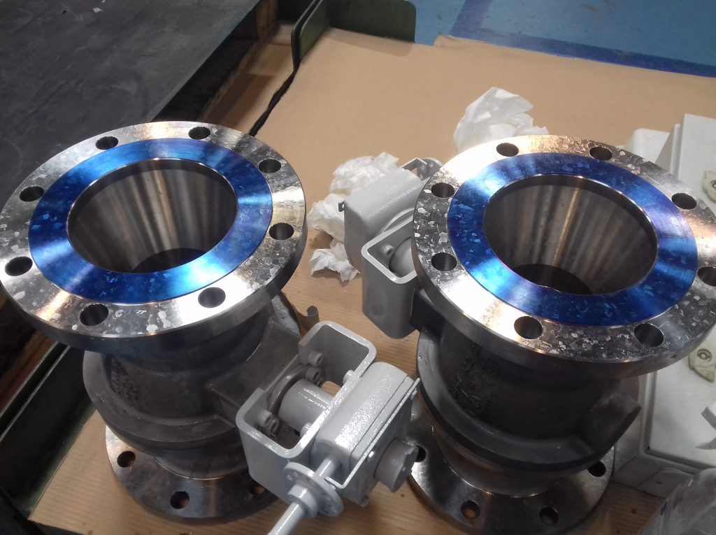 In-situ anodizing of titanium valve flanges to improve their resistance to corrosion.